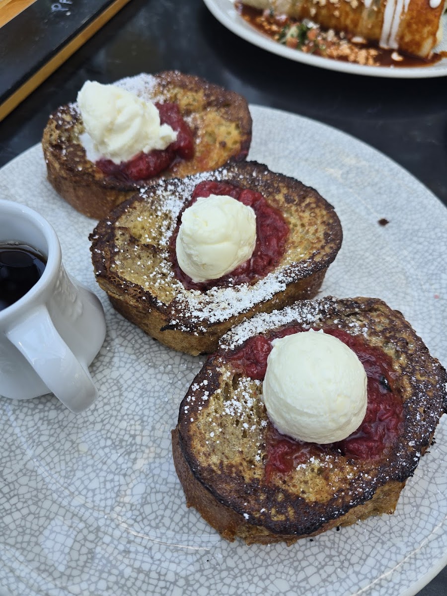 I recently dined at The Goldfinch in Irvine with a friend, and it was a delightful experience overall. We were eager to try their prime rib, which is only available from Friday to Sunday, and it did not disappoint--absolutely delicious! We also ordered the maple-glazed double pork chop, which came in a good portion size but was unfortunately overcooked and tough to eat. However, the roasted bone marrow was a highlight--rich and flavorful. For dessert, the fresh berry cobbler was a satisfying end to our meal. I also tried their espresso martini, which was a bit too creamy and sweet for my taste. Despite this, the overall experience was great. The service was excellent, and the ambiance was inviting. It's a spacious restaurant, perfect for a relaxed evening out. I'm definitely planning to return, especially to try other items on their menu and perhaps their brunch on the weekends.